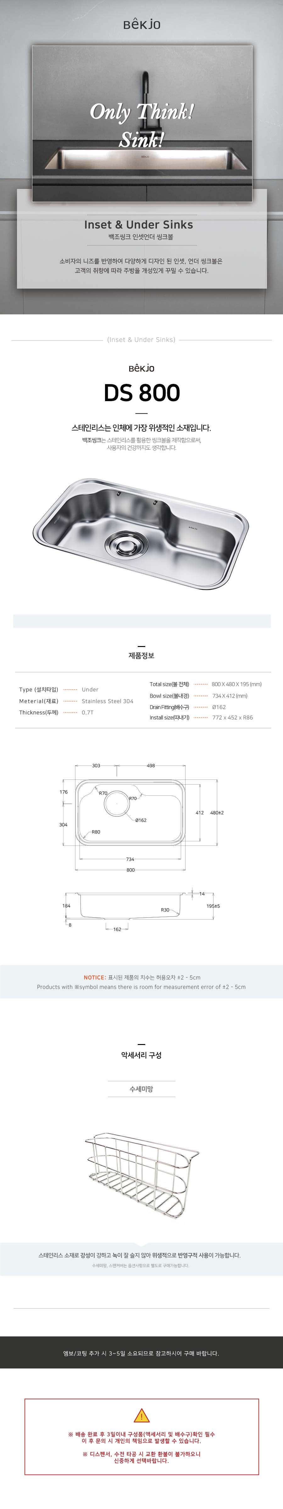 씽크볼 설치시 주의 사항