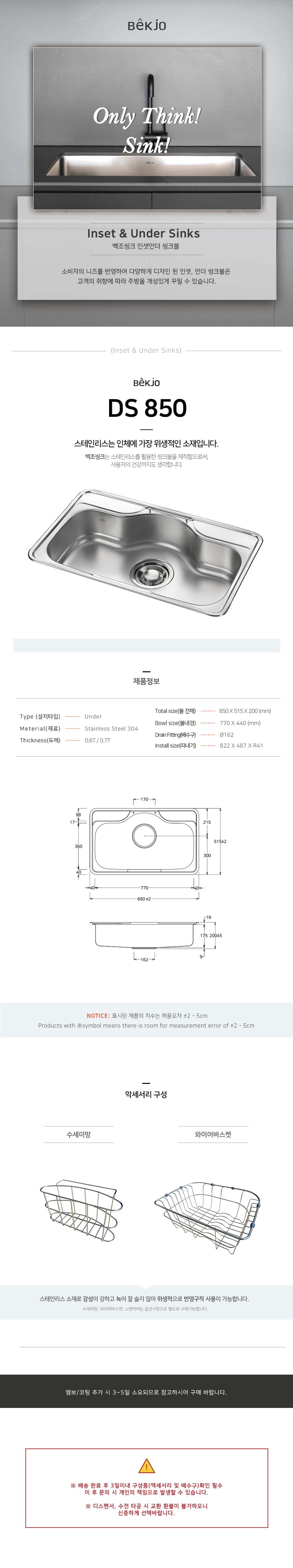 씽크볼 설치시 주의 사항