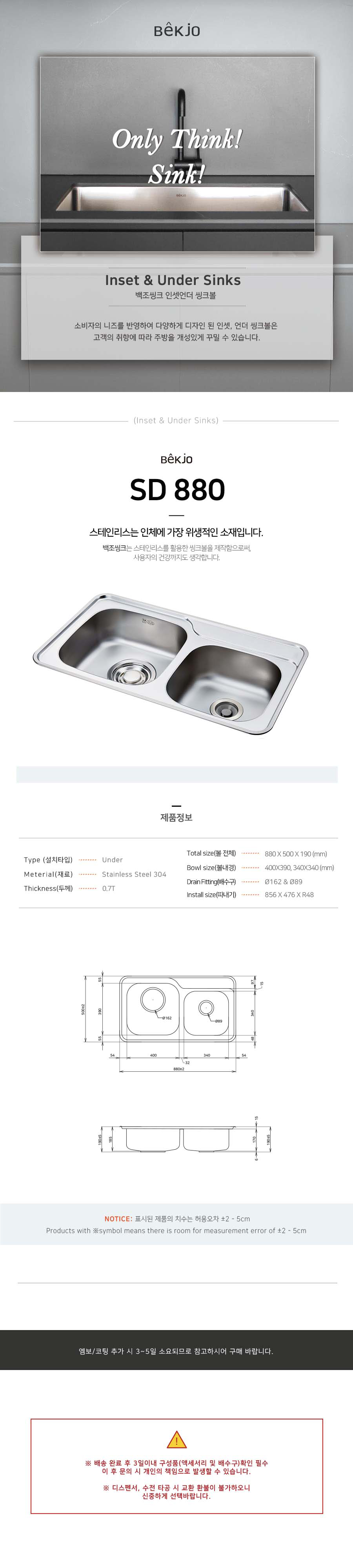 씽크볼 설치시 주의 사항